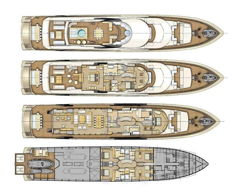 - Luxurious master suite on the bridge deck with its own private terrace and fitness amenities
